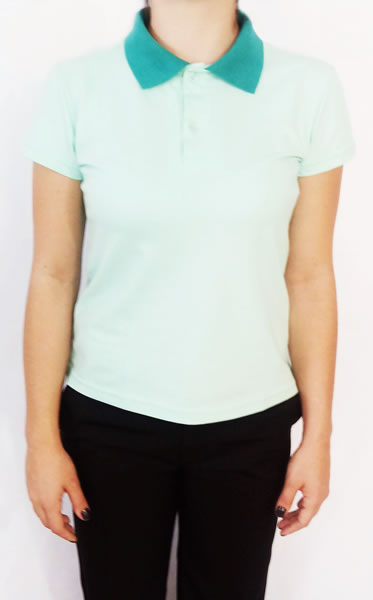 Camiseta polo feminina em Piquet ( 52% poliester 48% algodão )
