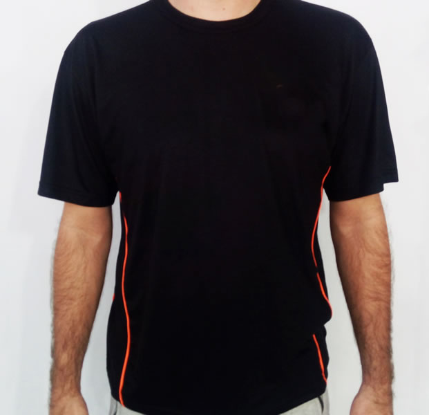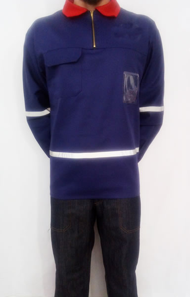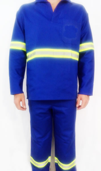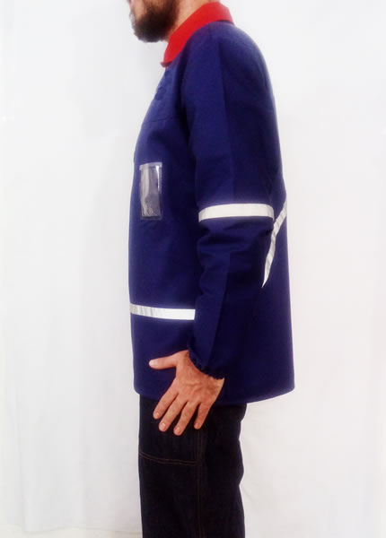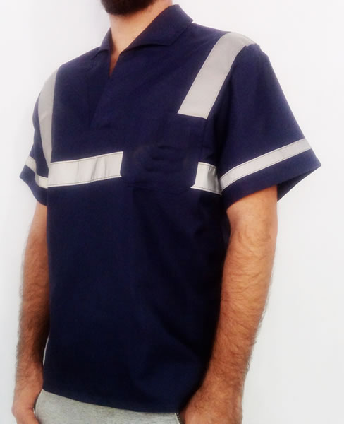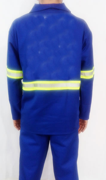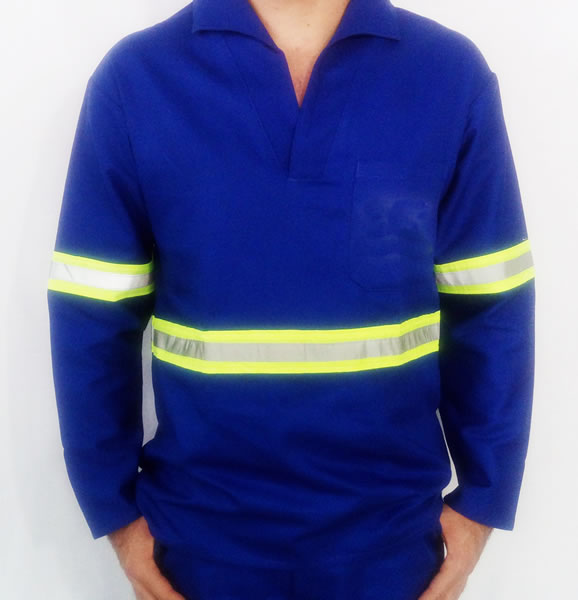 Refletivo nas mangas na horizontal, frente na horizontal e costas na diagonal