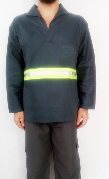 Faixa refletiva cinza estreita nas mangas ( horizontal)