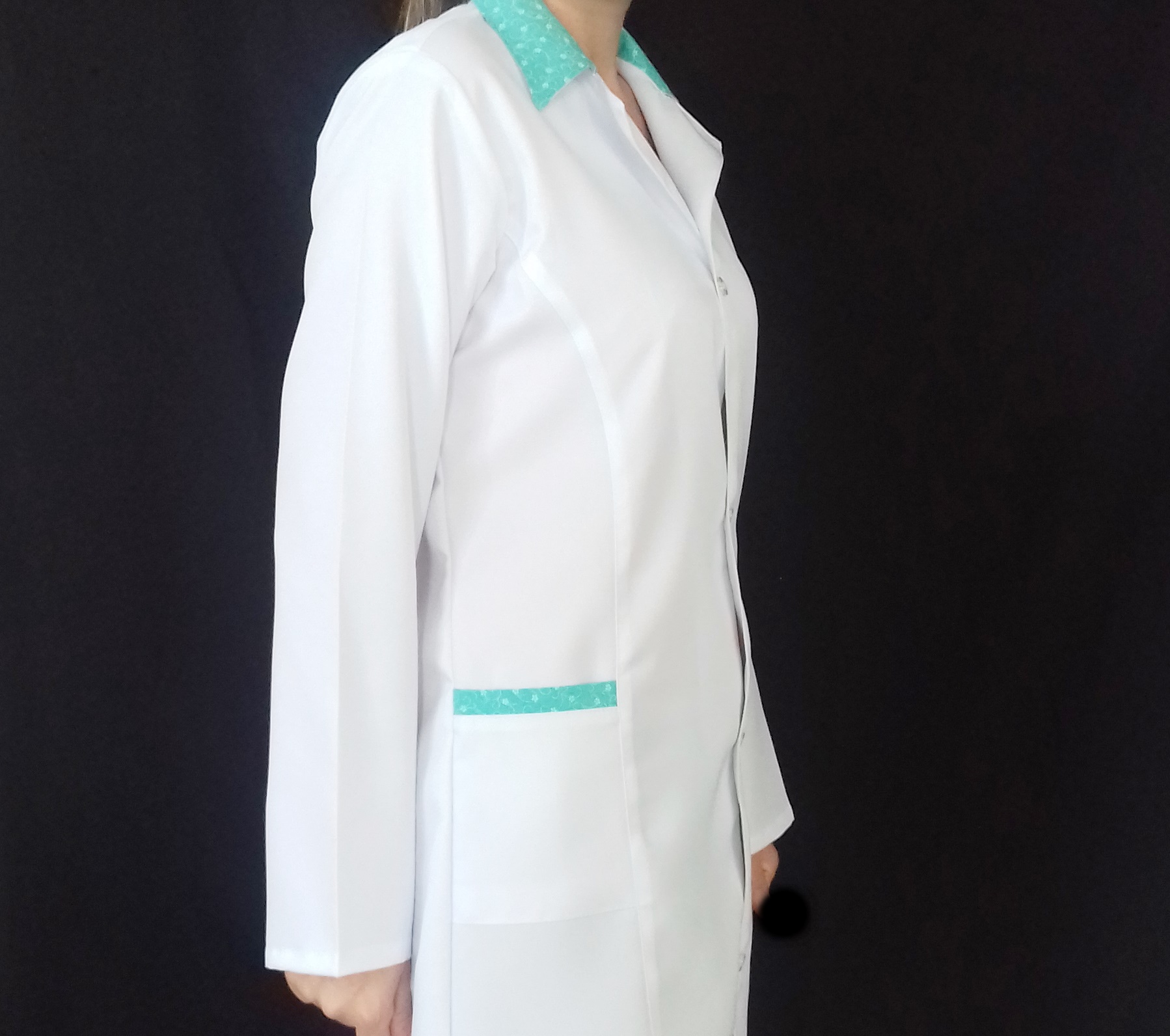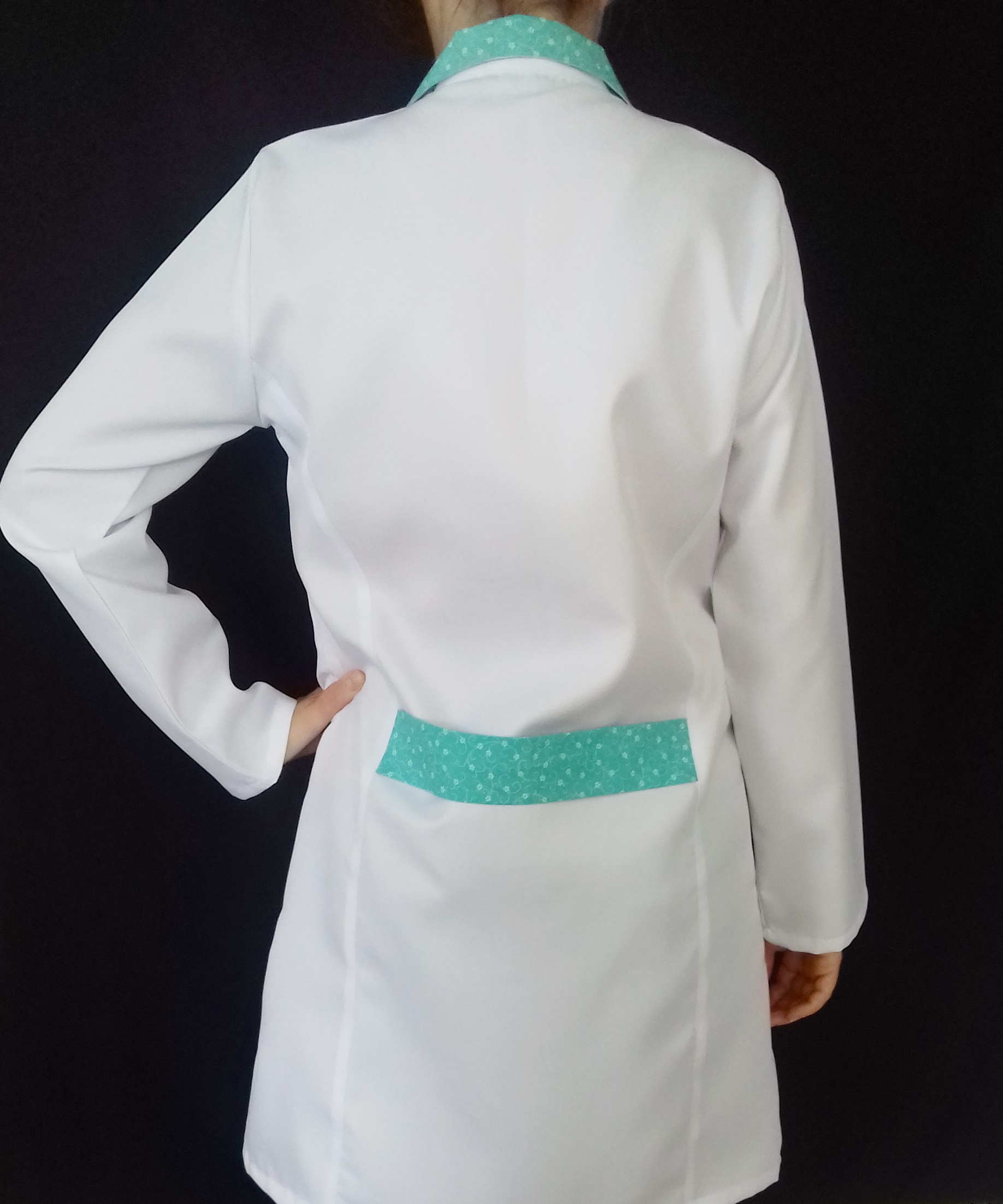 Acinturado com detalhes em outra cor na gola, cinta e bolsos
