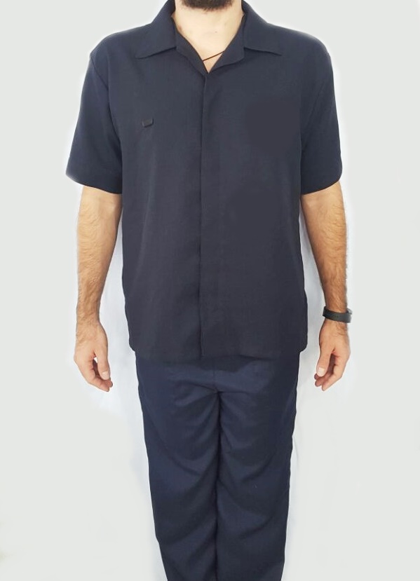 Bata frente e costa em Oxford ( 100% poliester ) Azul marinho